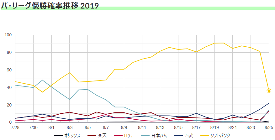 Continue readingソフトバンクの優勝確率が1日で急落しています。