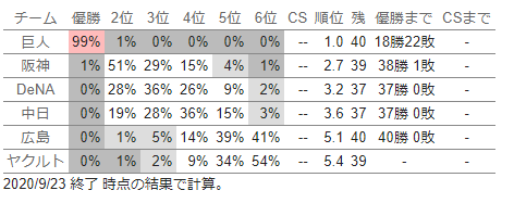 それらを合わせて、選手やチームの状態などを考慮して、総合的に「優勝を予想」するのは、ファンの皆さんそれぞれの楽しみの範疇です。予想の材料の一つとして加えていただければと思います。