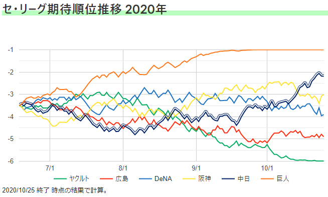15日時点での「現状」と、25日時点での「現状」を、正直に数字にしているだけで、優勝決定日を「予想」しているわけではないことが分かっていただける例になったと思います。